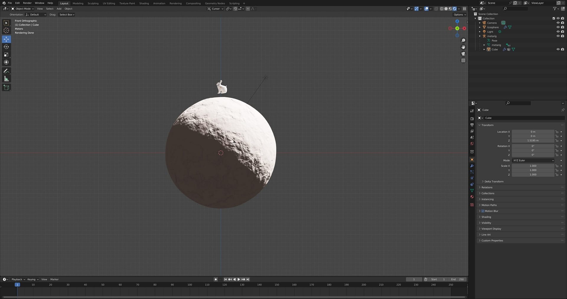 First, I went through Pinterest and Vimeo to gain some inspiration and ideas to aid in my creation. After spending time on those two websites I then came up with the idea of animating a rabbit walking on a rotating moon on Blender. I am also thinking about implementing some 2d animation into the 3D animation as well as my way of challenging myself.