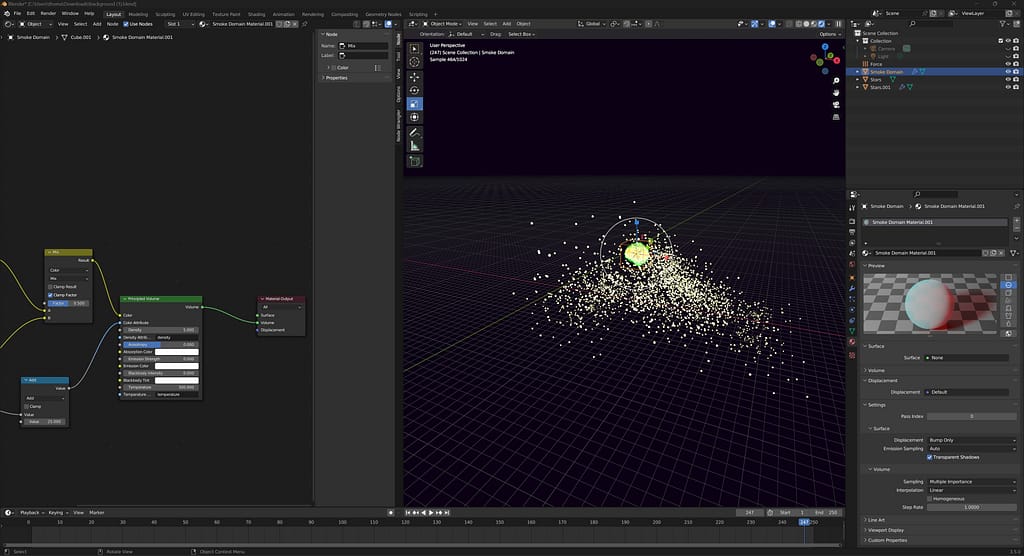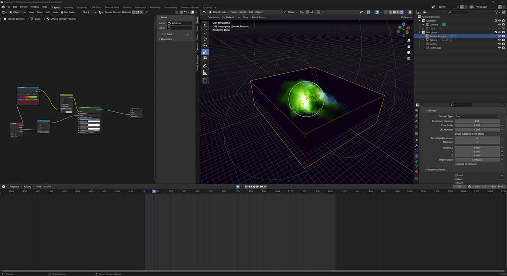 For week 30 I began upgrading my nebula. Unfortunately I realised that the Blender that was being used on the college computers was an older version than the one used on my home computer. because of this, my progress had been stalemated as the physic properties would either corrupt or work differently due to the way the software render smoke (the computers that I was using at college were on Blender 3.2.1 and so some of the nodes that were in place were not implemented until the newer versions such as Blender 3.4 and 3.5. Once I got home and worked on my computer I managed to edit the smoke and create a vibrant colouring using different unique tones to create a vibrant and eye catching nebula. Below is a screenshot of the progress.