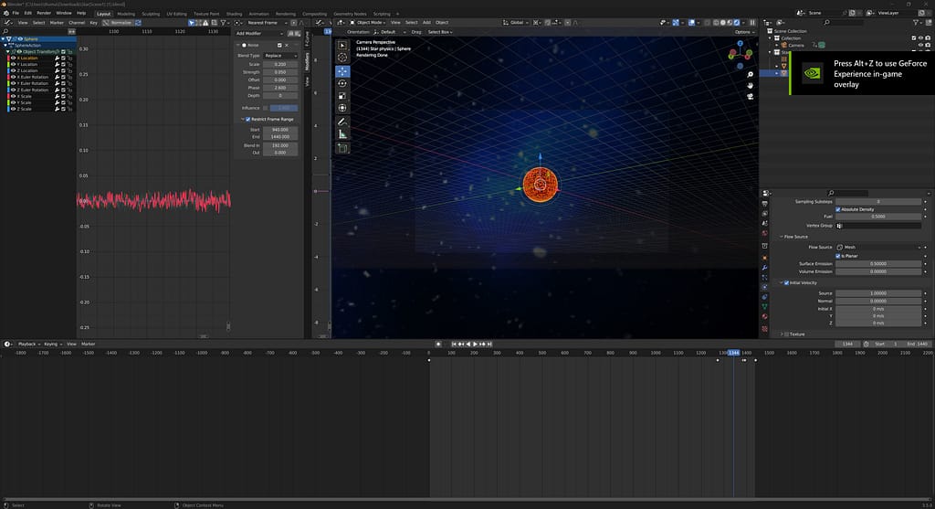 For the next few days I reworked the animation of the star after realising that it looked very janky and instead of imitating a star it looked like that of a bouncy ball. I started by changing the camera angles, I then replaced the pulsating with noise vibrating using the graph editor feature. the pre rendered result appeared very useful and by reducing the amount of camera angles it made the animation feel heavier in a good way as a massive star wouldn’t have fast movements and reactions.