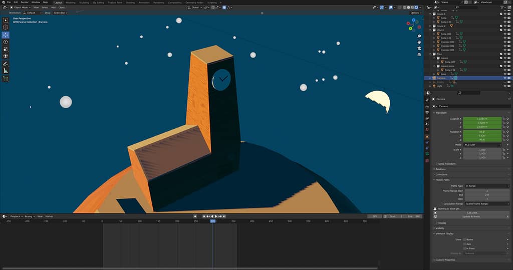 For the final part of the snow, I also integrated more detail into the church by adding a clock. This made the scene feel more alive and less toy-like.