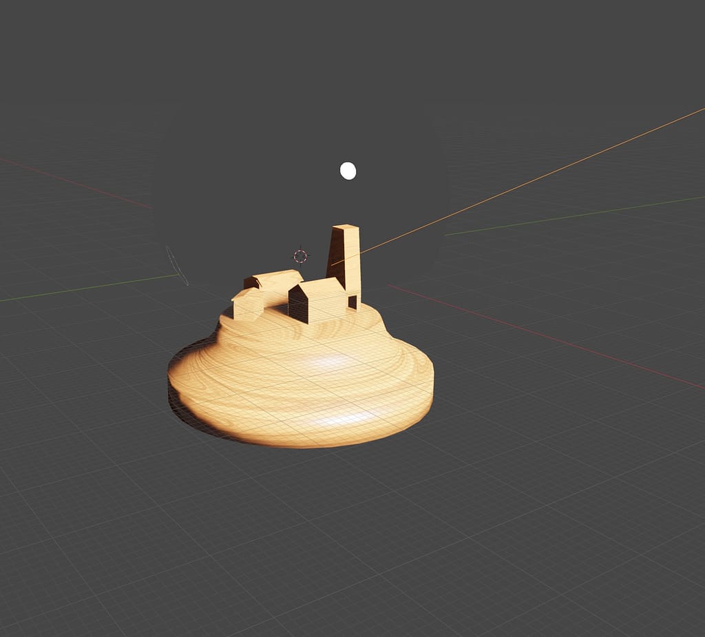 After that, I then began re working my sphere as once I built the houses, they were distorted and couldn’t be seen from the outside. I decided to add a glass BSDF and then removed the original BSDF, this immediately made it clearer and allowed me to see my buildings inside.