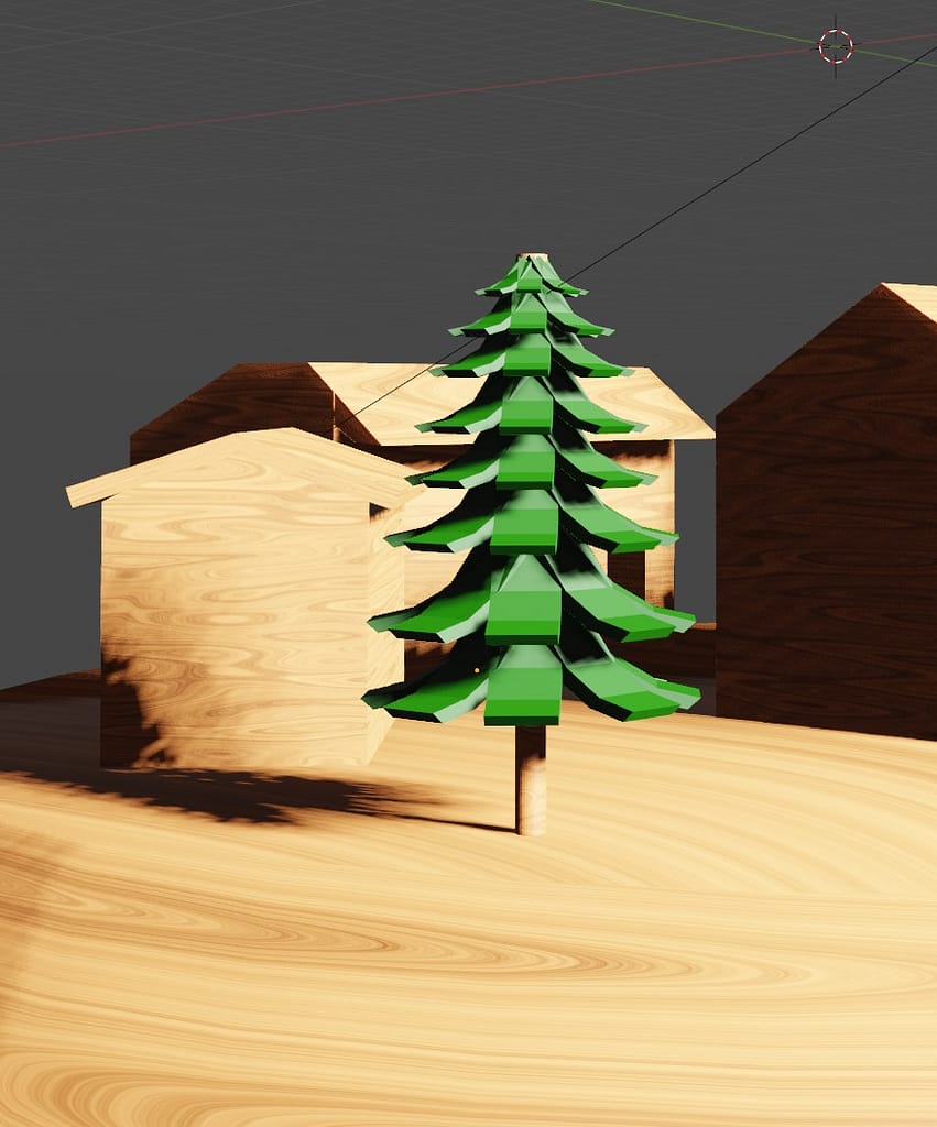 After adding the leaves, I added the material to the tree. Ensuring that the leaves were a dark green and the body of the tree was the same wooden pattern I had been using