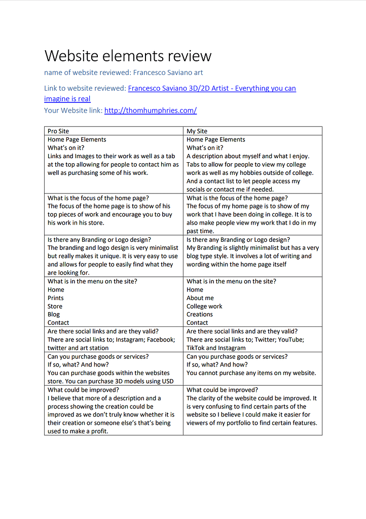This week I reviewed my website against others within the VFX/3D modelling industry and looked to see how my site compared.