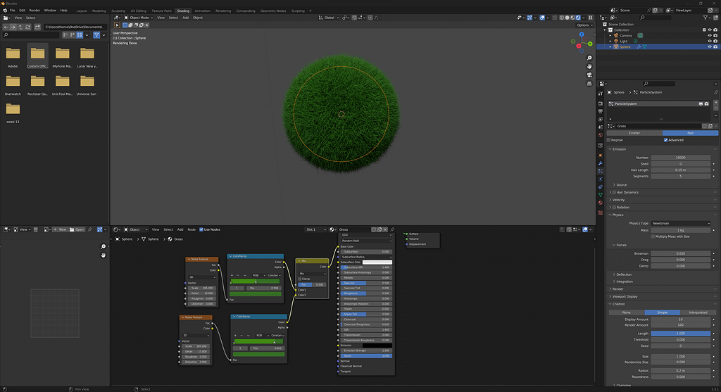 The first thing I began doing was going through tutorials to help me with the process. I first found a tutorial on how to make grass and it was extremely useful and very realistic. Below is the link as well as a screenshot of what the grass looks like within blender