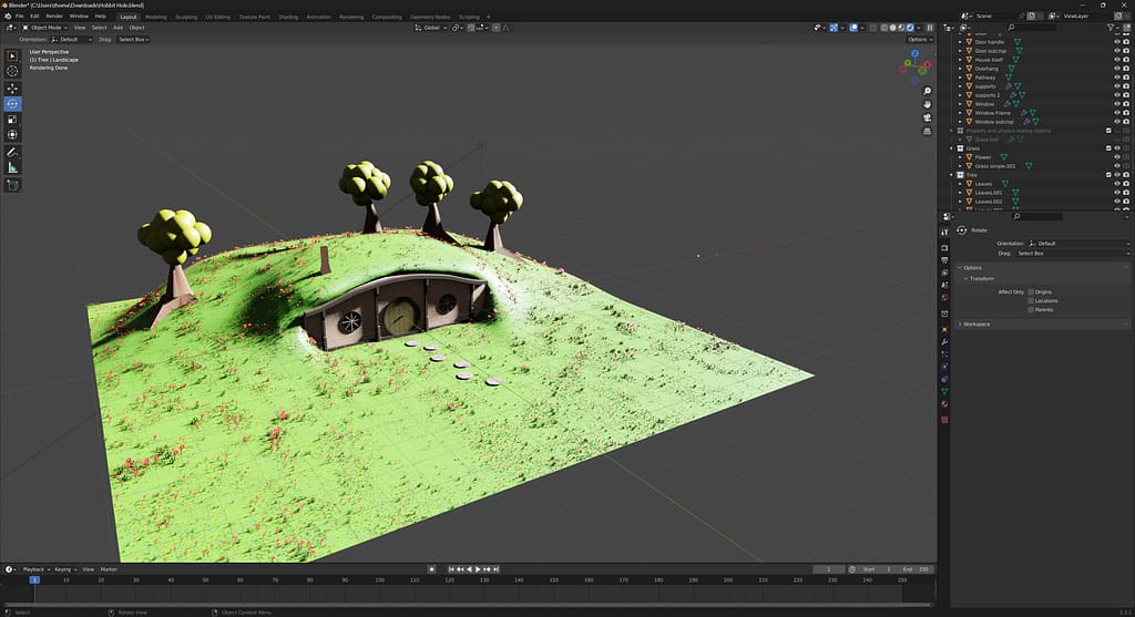 For our assessment week, we were tasked with creating something that takes inspiration from Tolkien’s The Lord of the Rings books at first I thought of creating the ring but then came to realise it would be too simple and so I decided by creating a Hobbit hole instead.
