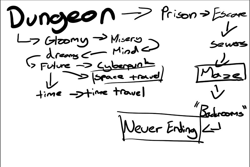 For the Beginning of Week 4 I began to create shading using Photoshop. I learnt this by turning a circle into a sphere (shown below). On the second half of my lesson on Monday I created a concept of the layout of my dungeon. I gained inspiration from the now popular internet horror known as the backrooms to create a never-ending maze filled with creates known as ”wanderers”. For my First lesson on Thursday, I began to create models for my assets within my Dungeons and Dragons world. I began with making a template which I then Imported into Dust 3d and then test animated it in Mixamo.